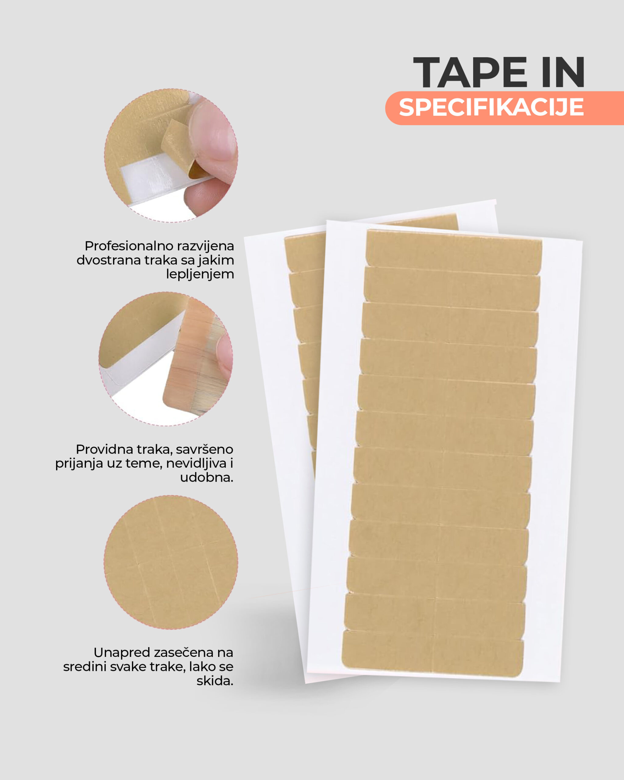 • 14 setova tape traka: Ukupno 168 traka (14 pakovanja × 12 trakica). Ultra-tanke, nevidljive i savršeno prijanjaju uz kosu. Vodootporne i postojane do 6+ nedelja.